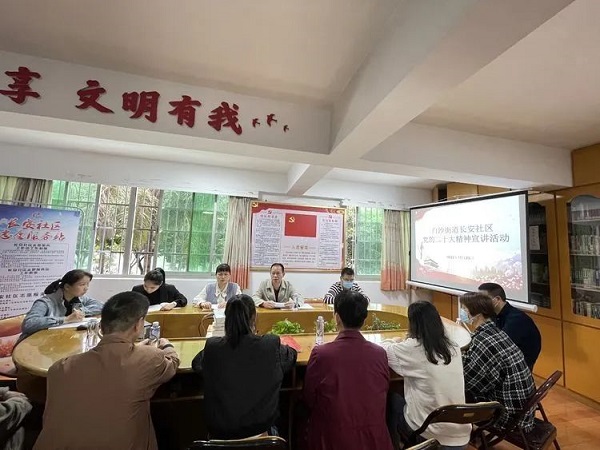 曹盛生對黨的二十大精神進(jìn)行了系統(tǒng)全面地宣講,并從堅持原原本本學(xué)、圍繞實(shí)際需要學(xué)、解決問題困惑學(xué)等方面對如何學(xué)深學(xué)透黨的二十大精神進(jìn)行講解。他強(qiáng)調(diào),要深刻領(lǐng)悟黨的二十大主題實(shí)質(zhì),弘揚(yáng)偉大建黨精神,切實(shí)做到“三個務(wù)必”;要全面把握黨的二十大提出的目標(biāo)任務(wù),落實(shí)“疫情要防住、經(jīng)濟(jì)要穩(wěn)住、發(fā)展要安全”重要要求,把思想和行動統(tǒng)一到黨的二十大戰(zhàn)略安排上來;要加強(qiáng)黨的全面領(lǐng)導(dǎo)和全面從嚴(yán)治黨,時刻牢記全心全意為人民服務(wù)的宗旨意識,堅決抵制群眾身邊“微腐敗”行為;要強(qiáng)化社區(qū)綜合治理,立足“打擊與防范并重”的總體思路,持續(xù)深入推進(jìn)掃黑除惡斗爭常態(tài)化,大力開展矛盾糾紛調(diào)處工作,全面預(yù)防和整治各類違法犯罪。