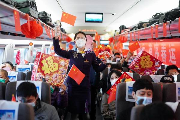 1月9日,在D2281次列車上,列車長郎茜(右)和旅客一起展示“福”字。新華社記者 季春鵬 攝 “春節前把各種會開完,節后全力爭搶工程訂單。”中建四局江蘇建設投資有限公司副總經理詹斌清近期頻繁乘高鐵在長三角城市間奔波,到各地檢查項目、布置工作。他感覺今年臨近年關比往年要忙。 在福建沿海,列車貼著海岸線穿行。右邊是連綿起伏的丘陵,左邊是不時從丘陵間露出的海面。中國第一汽車集團有限公司采購部工程師郝金銘卻沒時間欣賞風景。 他剛在江蘇丹陽確認了電池箱體制造進展,又趕往福建寧德查看電池裝配情況。疫情防控措施優化后,他一直忙著出差。因為很多訂單開年就定下來,后面才能抓緊生產。“新能源是風口,快一步就有更多機會。”郝金銘說。 市場總有機遇,堅持才能勝利。深圳一家美容企業的市場經理王磊,小心翼翼地把一臺除皺儀器從常州“護送”到潮汕。疫情給美容行業帶來困難,但他相信2023年會迎來更多消費者。他笑著說:“消費要升級,人們對美好生活的向往不會變。” 十多名臺胞從無錫上車,到廈門轉飛機回島過年。當被問到“帶了什么年貨”時,他們笑著說,現在物流很方便,很多東西都不用帶。不過,坐D376次列車從深圳回南昌的大學生陳洋,卻把學校的“家當”都盡量帶回家。馬上研究生畢業的她,將全力以赴寫論文、找工作。 D2281次列車從廣東陸豐站駛出時天已經黑了,但車窗外沿途城市燈光十分明亮。熟悉沿途風土的旅客說,在深圳和汕頭兩個經濟特區之間的陸豐和惠州,不僅海鮮十分有名,經濟發展活力也越發明顯。 中建安裝集團有限公司南方分公司助理總經理劉雨高說,他經常乘高鐵往返于長三角和珠三角之間。這幾年公司承建了長三角、珠三角許多城市的交通、廠房等項目,也感受到這些城市經濟發展的活力。 在D2281次列車上,記者遇到鞋業技術員董叢春。他曾在廣州工作,如今為晉江企業做技術指導。他說,近些年,行業的技術不斷升級,讓他感觸最深。他相信好技術意味著好品質,也會帶來好銷量。