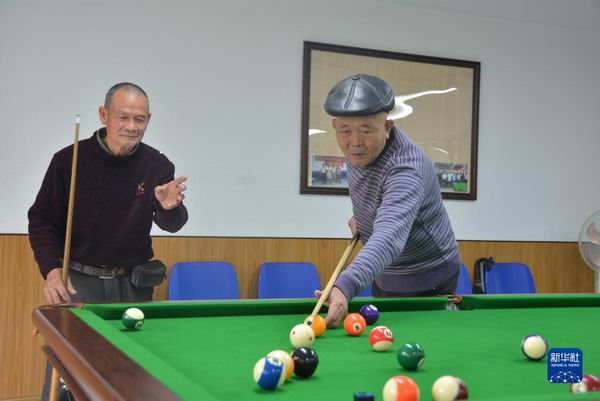 2月1日,兩位老人在霞陽社區(qū)老人活動中心打臺球。新華社記者顏之宏 攝 吃穿不愁,樂享晚年。68歲的楊梅英每天都會在居委會前的廣場上帶領老年朋友們跳廣場舞,用她的話說就是“多鍛煉,身體好了,就是家里最大的福氣”。為了豐富老年人的晚年生活,社區(qū)拿出1600平方米的經(jīng)營性用房改造成霞陽社區(qū)老人活動中心。在這里,老人們不僅可以進行各種球類和棋牌類活動,還能參加老年大學的培訓,把年輕時“落下的知識”撿起來,開闊眼界。 老有所樂,還要老有所為。物質生活和精神生活豐富了,霞陽社區(qū)的老人們還主動發(fā)揮“余熱”,擔任社區(qū)的“民情觀察員”。曾擔任過村老人協(xié)會會長的楊繼祥盡管已經(jīng)85歲了,但仍奔走在社區(qū)的大街小巷,哪里的房客和房東起了糾紛、誰家的親友之間有了嫌隙,他都會主動過問調解。“我身體不太好,走路比較慢,但大家都會等我,年輕人看到我們這些長輩去了很快就沒了脾氣。” 相較于社區(qū)中的耄耋老人,剛過古稀之年的楊亞群總說自己是“年輕人”。除了家中長輩的角色,楊亞群還是孩子們上學放學路上的“義務交警”,也是活躍在街頭巷尾收集社情民意的“社區(qū)義工”。在他看來,自己為社區(qū)做的每一件小事,都能為年輕一代“樹榜樣”。 也正是在社區(qū)老年朋友的支持參與下,霞陽平安巡防隊、婦女互助會、茶桌調委會、鄉(xiāng)賢理事會和志愿服務隊近年來相繼成立。