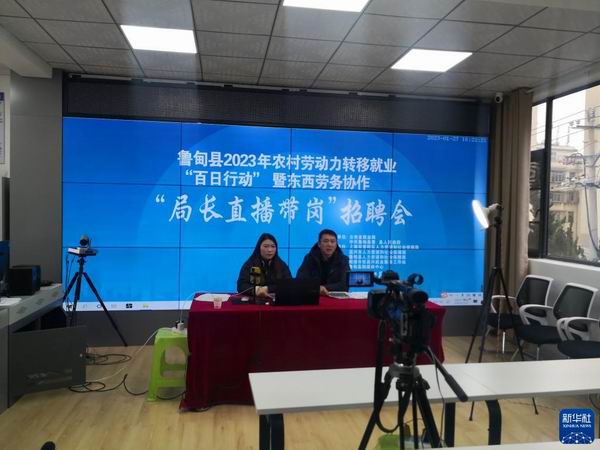 1月27日,云南省魯?shù)榭h人社局局長(zhǎng)黃躍倫(右)在參加“局長(zhǎng)直播帶崗”活動(dòng)。新華社發(fā)(王登柒 攝) “直播活動(dòng)很接地氣,在線就能直觀快速了解企業(yè)環(huán)境和崗位信息。”魯?shù)榭h小寨鎮(zhèn)趙家海村村民徐家虎說(shuō),通過(guò)看直播,他找到了浙江桐鄉(xiāng)一家企業(yè)的新工作。 “做好‘局長(zhǎng)直播帶崗’要提前做足功課,不僅要了解企業(yè)崗位情況,還要學(xué)習(xí)與網(wǎng)友溝通的技巧。”威信縣人社局局長(zhǎng)楊超群的首場(chǎng)直播有2.8萬(wàn)人次觀看。“為了群眾能找到好工作,我也是‘拼了’。”楊超群說(shuō)。 政府搭臺(tái)“唱戲”,企業(yè)收獲滿滿。廣東惠州一家電子企業(yè)參與巧家縣“局長(zhǎng)直播帶崗”活動(dòng),成功招聘220人,目前已有30人入職。企業(yè)人事部主管吳歡歡說(shuō):“‘局長(zhǎng)直播帶崗’提高了公司知名度,還降低了招聘成本,讓公司和求職者實(shí)現(xiàn)雙贏。”
