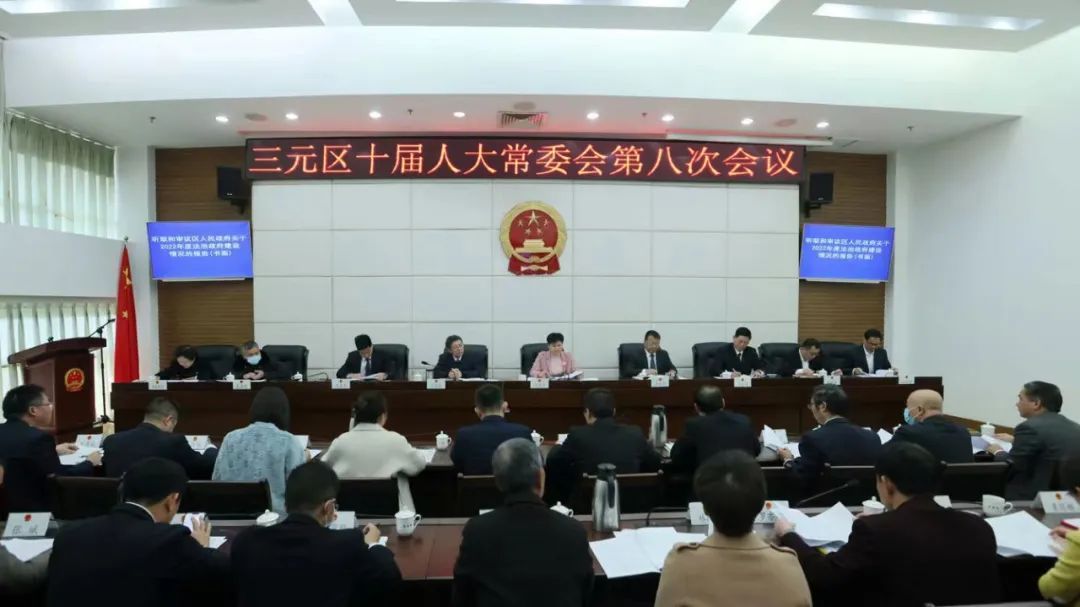 2月27日,三元區十屆人大常委會召開第八次會議,區人大常委會主任林翠玲,副主任羅裕明、范其鑒、周金濤、蘇奕泰及其他組成人員出席會議,區政府副區長肖方杰,區監察委副主任賴勇生,區法院院長黃偉,區檢察院檢察長程鳳娟,區政府辦負責人,部分鄉鎮人大主席團、街道人大工委負責人列席會議。區人大常委會副主任周金濤主持會議。