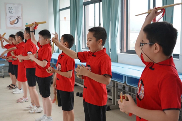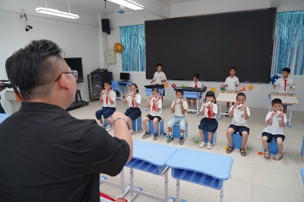 小朋友們在少年宮學習快板 這是小蕉小學鄉村學校少年宮國韻快板小組開展活動的一幕。當日,學校美術興趣室內,一幅幅水彩畫躍然紙上;吉他課上,學生認真學習彈奏技巧;手工制作室內,孩子們正在學習剪紙…… 依托鄉村少年宮這個平臺,利用課后服務及空余時間,小蕉小學于去年建立鄉村學校少年宮,開設國韻快板、巧筆繪畫、悠揚陶笛、飛揚舞彩、指尖吉他等8門豐富多彩的藝體課程,為孩子們提供了筑夢舞臺。