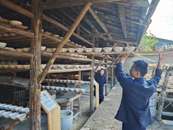 △陶陽(yáng)里歷史文化街區(qū)里,工匠將陶瓷工藝品放到架上晾干。(總臺(tái)央視記者彭漢明拍攝) 一代代匠人勇于創(chuàng)新,才有了宋青白、元青花、明色釉、清粉彩這些耀古爍今的傳世經(jīng)典。如今,科技賦能助力陶瓷制造走上工業(yè)化、智能化之路,3D打印技術(shù)讓人們的創(chuàng)意想法以“加速度”變成一件件陶瓷作品;業(yè)態(tài)創(chuàng)新催生陶瓷生產(chǎn)由傳統(tǒng)工業(yè)向創(chuàng)意產(chǎn)業(yè)轉(zhuǎn)型,古老的瓷器化身為時(shí)尚的“國(guó)潮”,傳統(tǒng)的老街成為“夜經(jīng)濟(jì)”發(fā)達(dá)的文旅融合新地標(biāo)。 習(xí)近平總書(shū)記多次強(qiáng)調(diào),要推動(dòng)中華優(yōu)秀傳統(tǒng)文化創(chuàng)造性轉(zhuǎn)化和創(chuàng)新性發(fā)展。 作為我國(guó)唯一的“國(guó)家陶瓷文化傳承創(chuàng)新試驗(yàn)區(qū)”,景德鎮(zhèn)在新與舊的碰撞中不斷煥發(fā)出新的生機(jī)。 中外交融 續(xù)寫絲路精神 千百年來(lái),絲路古道上的駝隊(duì)、鄭和下西洋的船隊(duì),將景德鎮(zhèn)瓷器及制瓷技藝傳到亞洲、非洲、歐洲幾十個(gè)國(guó)家和地區(qū)。由最樸素的泥土燒制而成的瓷器,深受不同地區(qū)不同文化人們的共同喜愛(ài),甚至被稱為“白色黃金”。大批身懷絕技的匠人也慕名而來(lái),繪就了“工匠八方來(lái)、器成天下走”的繁榮景象。 景德鎮(zhèn)陶瓷,是中外文化交流的“使者”,更是絲路精神的見(jiàn)證。 2018年,由景德鎮(zhèn)始發(fā)的“中歐班列”正式開(kāi)通,為當(dāng)?shù)靥沾沙隹诖蜷_(kāi)了一條新通道。景德鎮(zhèn)日用瓷、藝術(shù)瓷已出口30多個(gè)“一帶一路”共建國(guó)家,2022年全市出口額同比增長(zhǎng)244.6%。