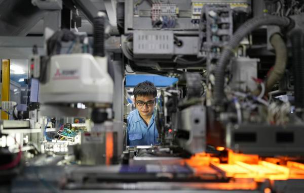 2023年8月9日,在浙江省臺州市黃巖區省級專精特新“小巨人”企業浙江公元新能源科技股份有限公司,工作人員操作全自動焊接機生產太陽能電池片。新華社記者 翁忻旸 攝 張北可再生能源柔性直流電網建成投用,每年可向北京輸送140億千瓦時的綠色電能;南方電網與上下游數千家供應商合作創新,拉動上下游近4000億元的產能需求;齊魯石化-勝利油田百萬噸級CCUS示范工程,每年可減排二氧化碳100萬噸……追“風”逐“日”,低碳轉型,全國各地綠色發展勢頭正強。