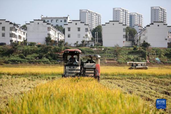 2023年10月17日,在安徽省黃山市休寧縣東臨溪鎮復耕的撂荒地里,聯合收割機收割水稻。 新華社發(樊成柱攝) 我國糧食生產連年豐收,2023年連續9年穩定在1.3萬億斤以上。從滿足量到提升質,綠色興農、質量興農,完善產業鏈條,樹立大食物觀……黨的十八大以來,糧食安全向更高層次躍升,高質量供給體系加快建設。 以占世界9%的耕地、6%的淡水資源養育了世界近1/5的人口,堅持產量產能一起抓、數量質量一起抓、生產生態一起抓……事實證明,中國人不僅能夠依靠自己解決吃飯問題,而且有能力把14億多人的飯碗端得更牢更好。 把牢糧食安全主動權,才能把穩強國復興主動權。 近年來,糧食需求剛性增長,世界糧食市場不確定性明顯增加。我國深入實施藏糧于地、藏糧于技戰略,抓緊耕地和種子兩個要害,加快提升糧食產能。截至2022年底,我國已累計建成10億畝高標準農田,穩定保障了1萬億斤以上的糧食產能。