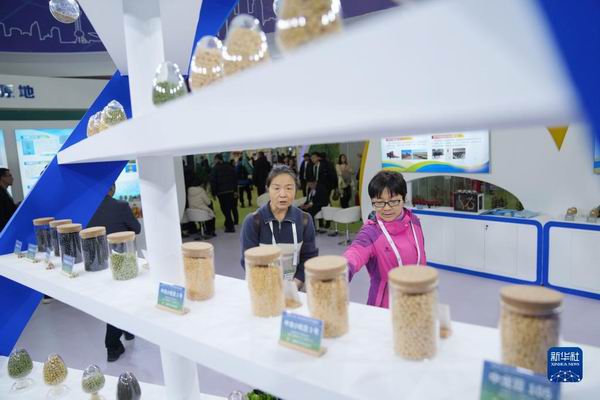 2023年11月15日,在首屆中國(黑龍江)國際綠色食品和全國大豆產業博覽會的黑龍江省農業科學院展區,參會者在了解豆種情況。 新華社記者 王建威 攝 今年,中央繼續提高小麥、稻谷最低收購價,完善玉米大豆生產者補貼,增加產糧大縣獎勵資金規模。各地扛穩糧食安全責任,積極推進間套復種、整改復耕,挖掘面積潛力。全國糧食播種面積17.85億畝,比上年增加954.6萬畝,增長0.5%。 國家統計局農村司司長王貴榮表示,全國糧食產量再創新高,為全面推進鄉村振興、加快建設農業強國奠定了堅實基礎,為加快構建新發展格局、推動高質量發展提供了有力支撐。