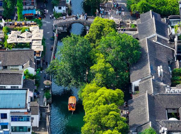 這是2023年7月3日拍攝的蘇州平江歷史文化街區(無人機照片)。新華社記者 李博 攝 2023年6月以來,“平江九巷”城市更新項目及“古城保護更新伙伴計劃”持續推進。這個昆曲、評彈、蘇繡、緙絲等非遺的聚集地,展現著原汁原味的姑蘇風韻。 守護文化傳統,留住歷史根脈。