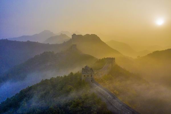 這是2023年11月1日拍攝的河北承德金山嶺長城日出景觀(無人機照片)。新華社發(周萬平 攝) 從召開文化遺產保護傳承座談會,到有序推進長城、石窟寺等重大文物保護工程;從南海西北陸坡一號、二號沉船遺址等重大考古項目取得新進展,到中華文明探源工程第五階段研究取得新成果;從“普洱景邁山古茶林文化景觀”入選《世界遺產名錄》,到大型中醫藥古籍整理保護項目《中華醫藏》首批成果發布……