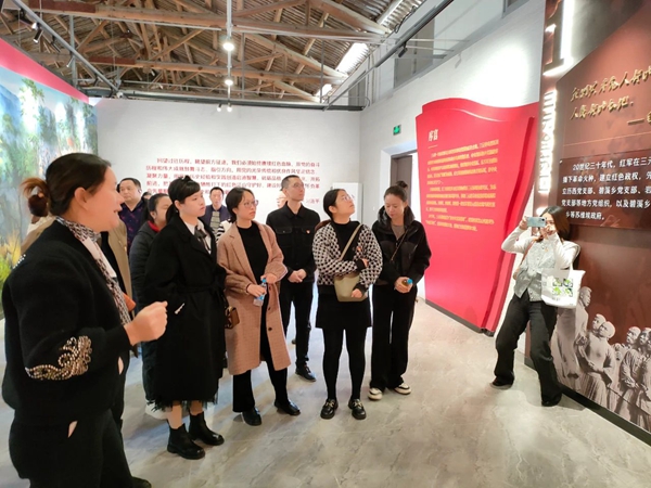 筠竹村全景 1934年5月29日,第五次反“圍剿”期間,紅七軍團紅十九師在“深坑嶺”遭遇并全殲國民黨軍駐莘口的二三九旅,延緩福建方面國民黨軍隊向中央蘇區進攻,鼓舞了中央蘇區軍民反“圍剿”的士氣,牽制了國民黨軍隊的部署,減輕了中央蘇區的軍事壓力。 “這地方原來是一棟破舊的房子,是20世紀70年代蓋的一個禮堂。”陳從炳指著“深坑嶺戰斗”紀念館的原址說。他深知,要改變筠竹村的面貌,首先要從提升村民的文化自信入手。于是,他結合“深坑嶺戰斗”紀念館改造提升工程,大力開展紅色文化宣傳,吸引企事業單位黨員進村開展黨建活動,體驗紅色文化。這一舉措不僅提升了筠竹村的知名度,更帶動了村里的經濟發展。 在爭取到中央組織部的“紅色美麗村莊”建設試點資金后,陳從炳更是全身心地投入到紀念館的建設中。從設計到施工,從布展到開館,每一個環節他都盡力參與。去年7月,紀念館正式開館,吸引了近千人前來參觀體驗。 “仗打得很激烈,村里的小溪水紅了幾天,都是戰場上流下來的血……”講解員向游客們介紹“深坑嶺戰斗”的歷史,講述了老一輩村民的回憶。近年來,陳從炳參與到保護開發“深坑嶺戰斗”革命遺跡中。筠竹村建有“深坑嶺戰斗”紀念館,并配套開展景觀提升工作,以圖文展板全景式講述這場戰斗,展品中來自戰斗遺址的手榴彈、刺刀等實物,讓人仿佛回到了烽煙歲月,聆聽紅色三明故事,重溫老區蘇區精神。