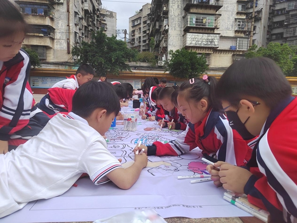 活動在“珍愛地球,人與自然和諧共生”的專題宣講中拉開序幕。在學校操場,百名一、二年級的學生在長達十幾米的畫卷上細致勾勒,表達對地球母親的美好祝福;少先隊員代表結合自身實際,倡議全社會共同關注地球環境保護。此外,活動還對“環保小衛士”給予表彰,營造人人參與保護環境的良好氛圍。