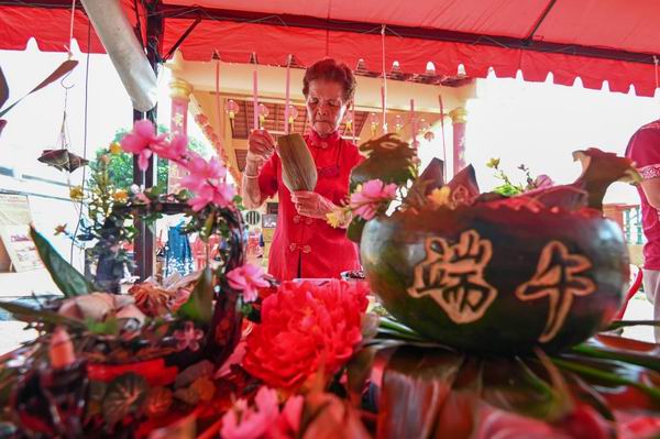6月8日,一名女子在馬來西亞馬六甲市參加裹粽子比賽。當日,馬來西亞馬六甲市舉辦“2024年慶端午”系列活動,人們以裹粽子、游龍舟等方式迎接端午節。新華社發(張紋綜攝) 端午臨中夏,時清日復長。國人賽龍舟、食粽子、佩香囊、掛艾草菖蒲,迎接端午佳節。與此同時,龍舟競渡也在世界各地上演,在水花四濺的揮槳競技之間,中華文化的深厚內涵與世界各國豐富多樣的人文傳統相互交織,奏響世界文化多元融合的交響曲。 端午節是中國四大傳統節日之一。2009年,聯合國教科文組織將端午節列入人類非物質文化遺產代表作名錄,這是中國首個入選世界非遺的節日。近年來,中國文化的熱度不斷升溫,端午節也在海內外同頻共振。 近年來,來自不同文化背景的各國民眾共同參與端午慶祝活動,在溝通交流中汲取文化營養。在中國多地舉辦的端午節系列活動中,國際友人的身影隨處可見。孟加拉國留學生阿凱在重慶參加端午非遺體驗活動,深入了解中國民俗;土耳其姑娘佳楠在天津生活多年,她在龍舟競技中感受拼搏和團結的力量;菲律賓布格卡門龍舟隊領隊查哈亞格參加2024年中國-東盟國際龍舟公開賽時說,中國是龍舟活動的發祥地,對他們的年輕隊員來說,能來中國參加龍舟賽是一次“圓夢之旅”。 今年端午前,荷蘭僑界舉辦龍舟節,舞獅表演精彩紛呈;德國舉辦首屆法蘭克福國際龍舟友誼賽,美因河畔熱鬧非凡……跨越地域、語言、民族、文化等差異,以槳會友,端午節走向世界,向人們展示了其獨特魅力,也反映出當代中國人的文明追求與精神風貌。 全球化進程不斷加快,人文交流已逐漸成為國家之間互動的重要形式。文化和體育交流活動日益豐富,為各國民心相通提供更大舞臺,進一步加深各國相互了解、促進各國民眾相互尊重,為推動不同文化相互融合、不同文明交流互鑒作出了貢獻。法蘭克福市市長約瑟夫在首屆法蘭克福國際龍舟友誼賽上致辭表示,熱絡的民間交往、蓬勃發展的文化交流和科研合作讓德中兩國人民增進理解、互利共贏。
