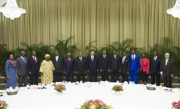 圖為2013年3月28日,國(guó)家主席習(xí)近平在南非德班同非洲國(guó)家領(lǐng)導(dǎo)人早餐會(huì)合影。新華社發(fā) 早餐會(huì)的暢談 2013年3月,南非德班,北方海灘飯店,中國(guó)代表團(tuán)駐地。正在非洲訪問的習(xí)近平主席邀請(qǐng)非洲國(guó)家領(lǐng)導(dǎo)人,在這里舉行一場(chǎng)非同尋常的早餐會(huì)。 鋪著潔白桌布的大圓桌,布置得簡(jiǎn)潔、典雅。14位非洲貴客一一落座。壽桃包、春卷……一道道菜肴擺上餐桌。 此時(shí),習(xí)近平擔(dān)任國(guó)家主席后首次對(duì)非洲的訪問已經(jīng)進(jìn)入第五天。“聽聽非洲國(guó)家對(duì)發(fā)展中非關(guān)系的想法”,早餐會(huì)一開始,習(xí)近平主席就開宗明義,說明了舉行這場(chǎng)早餐會(huì)的初衷。 在座的非洲國(guó)家領(lǐng)導(dǎo)人紛紛回憶起各國(guó)同中國(guó)人民的友誼。 時(shí)任南非總統(tǒng)祖馬說:“在我們爭(zhēng)取民族獨(dú)立和自由的時(shí)候,就同中國(guó)人民并肩作戰(zhàn)。”烏干達(dá)總統(tǒng)穆塞韋尼說:“中國(guó)一直堅(jiān)定反對(duì)殖民主義,中國(guó)在歷史上和非洲一直同屬一個(gè)世界。”時(shí)任莫桑比克總統(tǒng)格布扎說:“中國(guó)真心幫助非洲走出貧困。”…… 對(duì)于習(xí)近平主席來說,非洲這片希望大陸熟悉而親切,他年輕時(shí)就熟知中非友好事業(yè)。 “中非是休戚與共的命運(yùn)共同體。歷史反復(fù)證明,中國(guó)發(fā)展好了,非洲發(fā)展會(huì)更順;非洲發(fā)展順了,中國(guó)發(fā)展會(huì)更好。”習(xí)近平主席一言點(diǎn)明中非關(guān)系的真諦。 前一天結(jié)束的金磚國(guó)家領(lǐng)導(dǎo)人同非洲國(guó)家領(lǐng)導(dǎo)人對(duì)話會(huì),議題是“釋放非洲潛力:金磚國(guó)家和非洲在基礎(chǔ)設(shè)施領(lǐng)域的合作”。 早餐會(huì)上,不少非洲國(guó)家領(lǐng)導(dǎo)人繼續(xù)了這一話題。習(xí)近平一邊仔細(xì)傾聽,一邊認(rèn)真記著。 人員培訓(xùn)、技術(shù)合作、金融投資……在一個(gè)個(gè)合作領(lǐng)域,非洲國(guó)家領(lǐng)導(dǎo)人渴望學(xué)習(xí)中國(guó)經(jīng)驗(yàn)、獲得中國(guó)支持。 習(xí)近平主席回應(yīng)道,中國(guó)政府將積極采取措施,鼓勵(lì)中國(guó)企業(yè)擴(kuò)大對(duì)非投資,特別是農(nóng)業(yè)和制造業(yè),基礎(chǔ)設(shè)施建設(shè)等領(lǐng)域的投資,將繼續(xù)要求中國(guó)企業(yè)積極履行社會(huì)責(zé)任,更加注重技術(shù)轉(zhuǎn)讓、人員培訓(xùn)、經(jīng)驗(yàn)共享。 圍繞和平、一體化、平等參與國(guó)際事務(wù)等議題,習(xí)近平主席與大家敞開心扉暢談。 “今天我們大家共聚一堂,有一個(gè)共同的理念和意愿,那就是非洲需要中國(guó),正如中國(guó)需要非洲。”時(shí)任貝寧總統(tǒng)亞伊的一席話,道出了非洲的共同心聲。 早餐會(huì)結(jié)束的時(shí)間到了,人們還有很多話要說。 “中非關(guān)系發(fā)展沒有完成時(shí),只有進(jìn)行時(shí)。”習(xí)近平主席意味深長(zhǎng)地說,“我們?cè)竿侵迖?guó)家一道努力,不斷認(rèn)清新形勢(shì)新任務(wù),不斷開辟新方式新途徑,不斷解決新矛盾新問題,推動(dòng)中非關(guān)系向更高層次、更廣領(lǐng)域發(fā)展”。