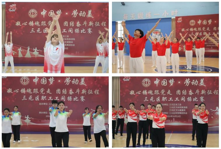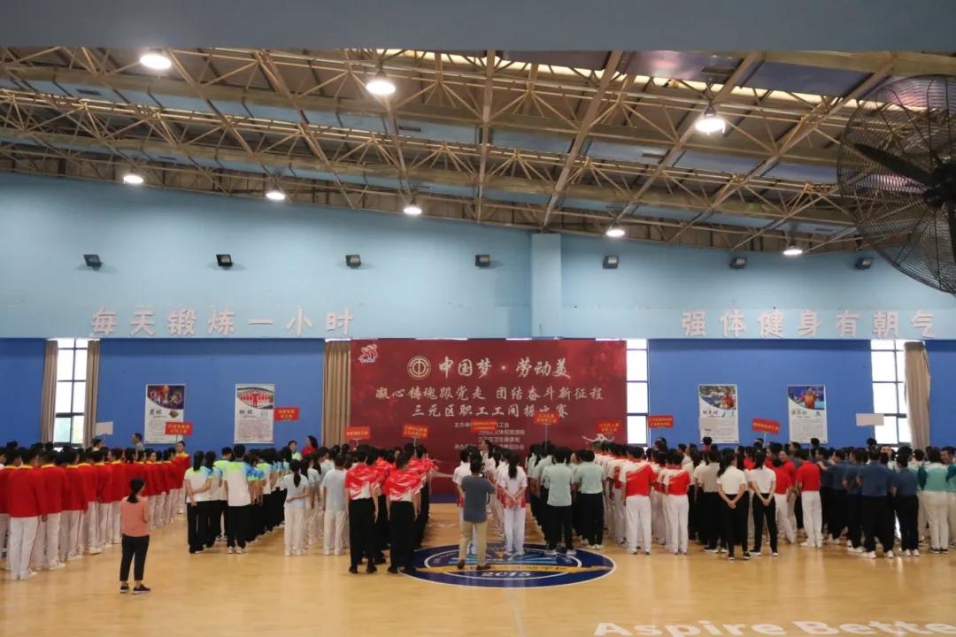 10月19日,“中國夢·勞動美——凝心鑄魂跟黨走 團結奮進新征程”全區職工工間操比賽在三元區第一實驗學校激情開賽。