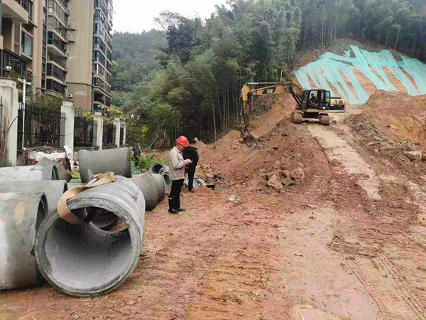 2月14日,走進三元洋山畬族村道路硬化工程施工現場,現場正在如火如荼施工中,伴隨著機械的轟鳴聲,運輸車一趟一趟地來回穿梭,一旁的工人們忙著路基澆筑混凝土工作,正在加快推進道路建設。