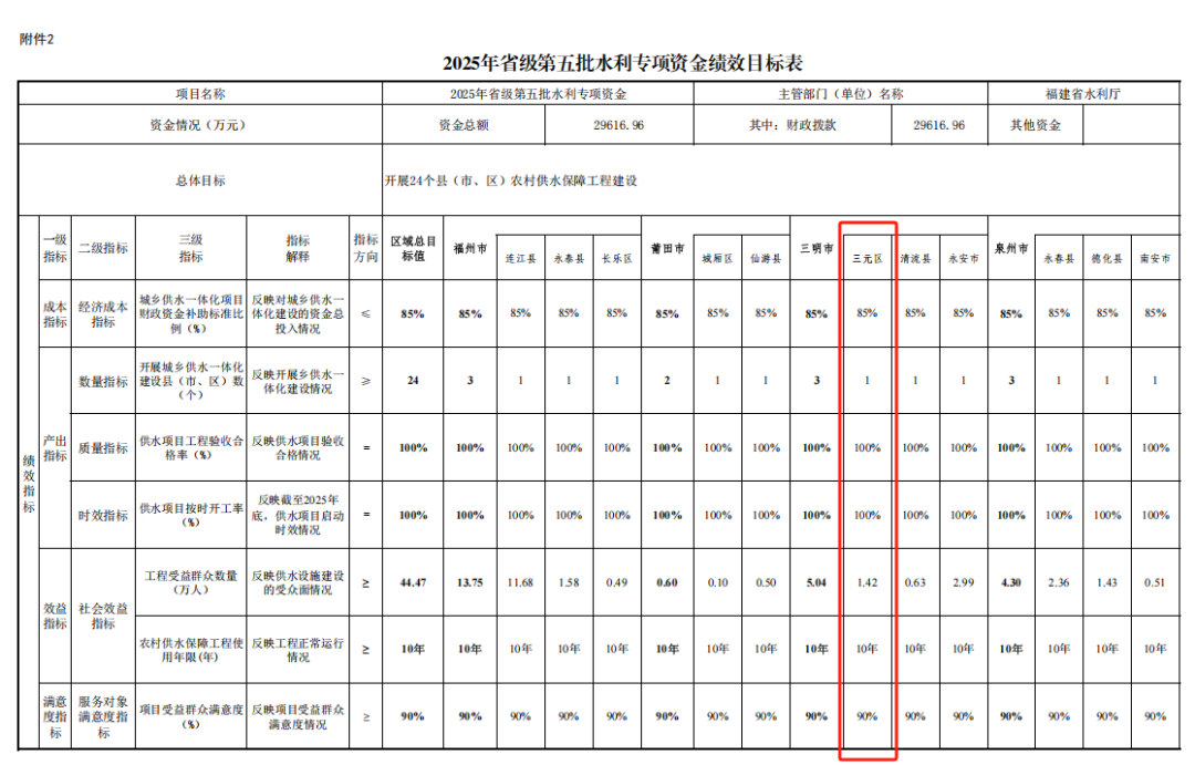 近日,福建省財政廳下達了2025年省級第五批水利專項資金,其中三元區榮獲農村供水工程建設資金1105萬元。此筆資金的注入將加快我區農村供水保障工程建設步伐,大大提高我區供水保障水平,讓人民群眾用上安全水、放心水。