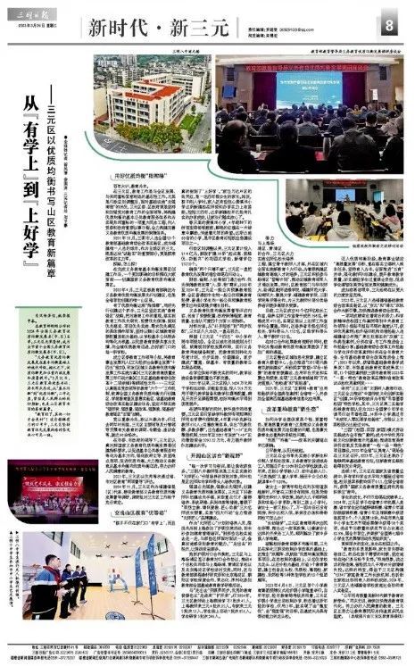 三明八中浦元樓 目前,三元區成立40個名師名校長工作室,培養名師工作室骨干成員398名,研修成員455名,實現區級以上名師工作室學科全覆蓋。同時,還培養省市級名師名校長、學科帶頭人152名,區級學科帶頭人、骨干教師722名。 在對口合作拓展教育視野的同時,數字化為推動教育優質均衡發展提供了更加廣闊的通道。 三元區整合區域信息化資源,建立區教育大數據中心,全力推進“DPS現代教育雙航線建設”,積極探索“數據+平臺+場景”的教育資源建設、應用平臺開發和實景應用探索,實現“三元教育城域網”萬兆光纜接入“校校通”和“班班通”。 2021年,三元區“互聯網+教育”應用經驗獲評全國典型案例(全省唯一),并參加全國第四屆基礎教育信息化應用展。 改革重構教育“新生態” 如何為學生提供更具個性、更富特色、更高質量的教育?這是推動義務教育優質均衡發展無法回避的問題,也是事關教育生態重構的系統性問題。 “優質”“均衡”——改革的關鍵錨點早已明確。 公平教育,從陽光做起。 三元區在全市率先實施小學新生積分制入學招生改革,義務教育階段進城務工人員隨遷子女100%到公辦學校就讀。近年來,達到小學學齡人口、初中適齡人口、“三類殘疾”兒童入學率、隨遷子女公辦校就讀率4個100%。 謝女士一家常年租住在列東街道崇桂新村。盡管在三明沒有購房,但是憑借著陽光積分入學政策,她的大兒子順利被崇和實驗小學錄取。等到二孩上小學時,謝女士一家又擔心了,萬一因為自己沒有購房,積分比別人低,弟弟沒辦法和哥哥同??稍趺崔k? “長幼隨學”。三元區教育局再次應民生所需,推出這一改革政策,讓像謝女士這樣的外來務工人員,順利解決了家中多孩入學難題。 破解校際教育資源不均衡問題,三元區在深化三明總校制辦學改革的基礎上,還推出“雙雁陣、雙航線”優質均衡發展改革項目。在總校制的基礎上,以名優學校為龍頭、以總分校為基礎,打造3個教育集團,建立包含龍頭校、優質校、薄弱校、新建校、農郊校等5種類型學校的12個組團雁陣。 2023年4月6日,三元區首個小學教育集團授牌儀式在滬明小學隆重舉行。當年年初,經市教育局考核并同意,三元區滬明小學退出總校制辦學,標志著這所年輕的學校,僅用3年,就實現了由“薄變優”、由“弱變強”的目標,迅速成長為具有帶動能力的龍頭校。 邁入優質均衡階段,教育事業鎖定“高質量發展”目標,重在落實立德樹人根本任務,堅持育人為本,全面推進“五育”并舉,強化教師隊伍建設,提升教育教學質量,切實減輕學生過重課業負擔,促進學生德智體美勞全面發展和健康成長。