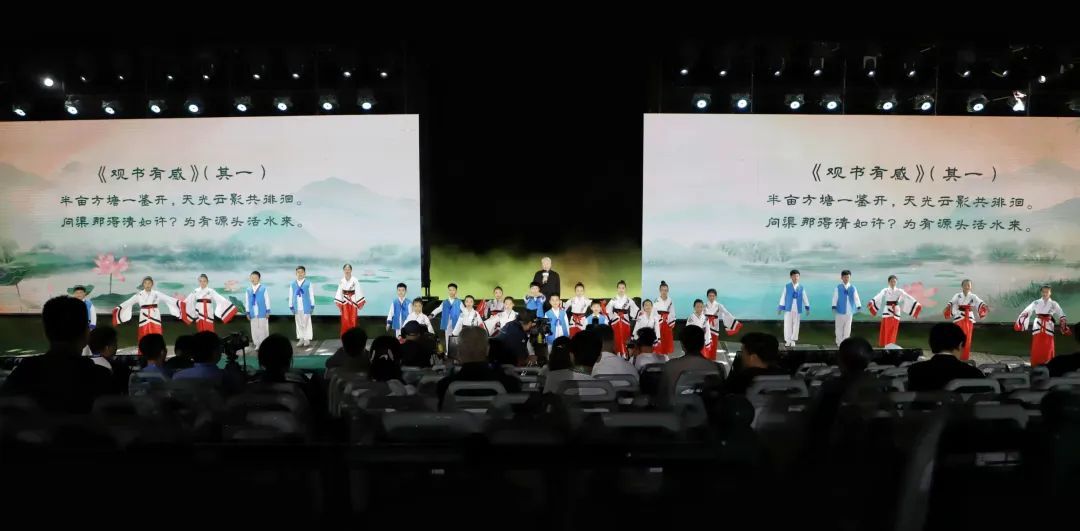朱熹第二十九世裔孫朱杰人與學生們一起朗誦《為有源頭活水來》(網信福建/圖)