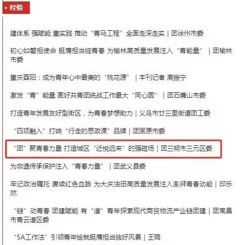 一年來,三元團區委深入學習貫徹習近平總書記關于青年工作的重要思想,緊緊圍繞區委區政府和上級團組織工作要求,聚焦共青團主責主業,堅持圍繞中心、服務大局,以青年發展型城市建設為抓手,努力實現“城市更友好,青年更有為”的城市愿景。 這一年,我們堅持黨的領導,共青團工作得到充分肯定 三元共青團工作得到區委和上級團組織關心厚愛,區委主要領導數次指示批示、區委分管領導定期組織召開青年工作聯席會,專題研究青年發展型城市建設工作,體系化推進青年發展型城市建設工作。團中央徐曉書記、團省委李騰書記等多位領導先后到訪,對我區共青團予以充分肯定。三元青年工作做法先后被中國共青團雜志、福建青年、東南網刊發宣傳。