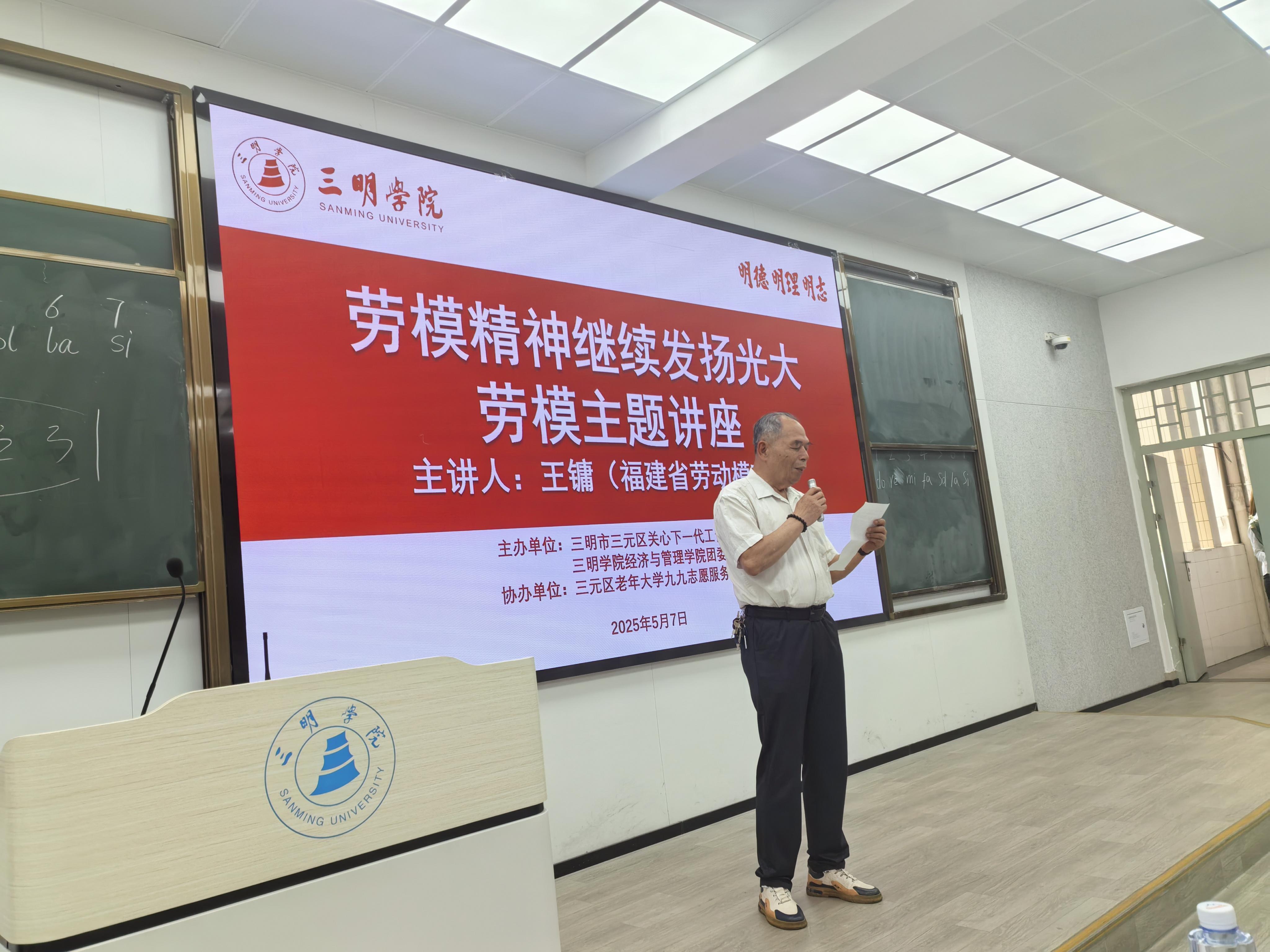 活動(dòng)現(xiàn)場,省勞模王鏞以“讓勞模精神發(fā)揚(yáng)光大”為題,深情回顧了上世紀(jì)70年代投身山區(qū)工廠建設(shè)為三明化工企業(yè)、三明兩個(gè)精神文明建設(shè)做出貢獻(xiàn)的事跡深深打動(dòng)了在坐的青年學(xué)生。 王鏞說:在日常工作中,我做到干一行愛一行、鉆一行。從不計(jì)較個(gè)人得失,只要工作需要,不管是白天黑夜,或是假節(jié)日,我都義不容辭的接受,按時(shí)保質(zhì)保量的完成各項(xiàng)工作任務(wù)。為此,黨和人民也給予了我至高無上的榮譽(yù)。我今年74歲了,希望用自己的實(shí)際行動(dòng)繼續(xù)踐行奉獻(xiàn)、有愛、互助、進(jìn)步的志愿精神,以榜樣的力量帶動(dòng)更多的人加入志愿服務(wù)中來。 青年學(xué)生們感慨道:以前總覺得“勞模”是書本上的概念,今天聆聽了王爺爺?shù)墓适拢蝗挥X得“愛崗敬業(yè)”的精神其實(shí)并不遙遠(yuǎn),它就在我們身旁。經(jīng)管學(xué)院的領(lǐng)導(dǎo)很高興地表示:這次活動(dòng)不僅是一次簡單的交流,更是一場精神的接力。我們要讓勞模精神走近校園,深度融入人才培養(yǎng),引導(dǎo)學(xué)生在“知”與“行”的統(tǒng)一中厚植家國情懷。 |