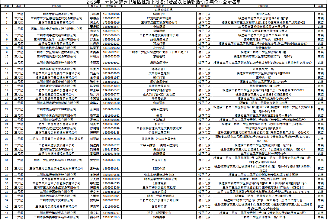 2025年三元區(qū)第四批線上報(bào)名消費(fèi)品以舊換新活動(dòng)參與企業(yè)公示