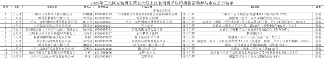 2025年三元區(qū)第五批線上報名消費品以舊換新活動參與企業(yè)公示