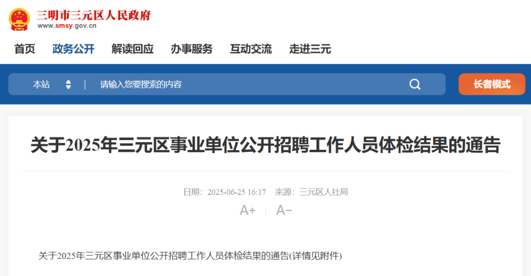 速看!2025年三元區(qū)事業(yè)單位公開招聘工作人員體檢結(jié)果公布!