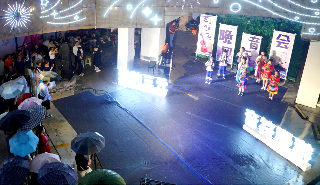 本次音樂會(huì)特別邀請(qǐng)小提琴演奏家孫群、心動(dòng)藝術(shù)團(tuán)等專業(yè)藝術(shù)家和團(tuán)隊(duì),在露天廣場構(gòu)建流動(dòng)的“藝術(shù)禮堂”。盡管演出現(xiàn)場突降細(xì)雨,然而觀眾熱情不減。大家或撐傘,或披著雨衣,冒雨欣賞臺(tái)上表演,用掌聲與歡呼聲回應(yīng)每一個(gè)精彩瞬間,展現(xiàn)出對(duì)音樂藝術(shù)的熱愛與支持。