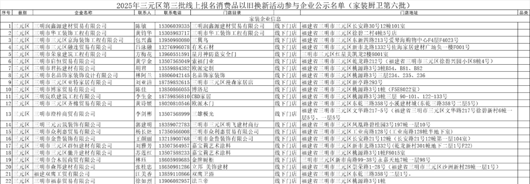 2025年三元區(qū)第六批線上報名消費品以舊換新活動參與企業(yè)公示