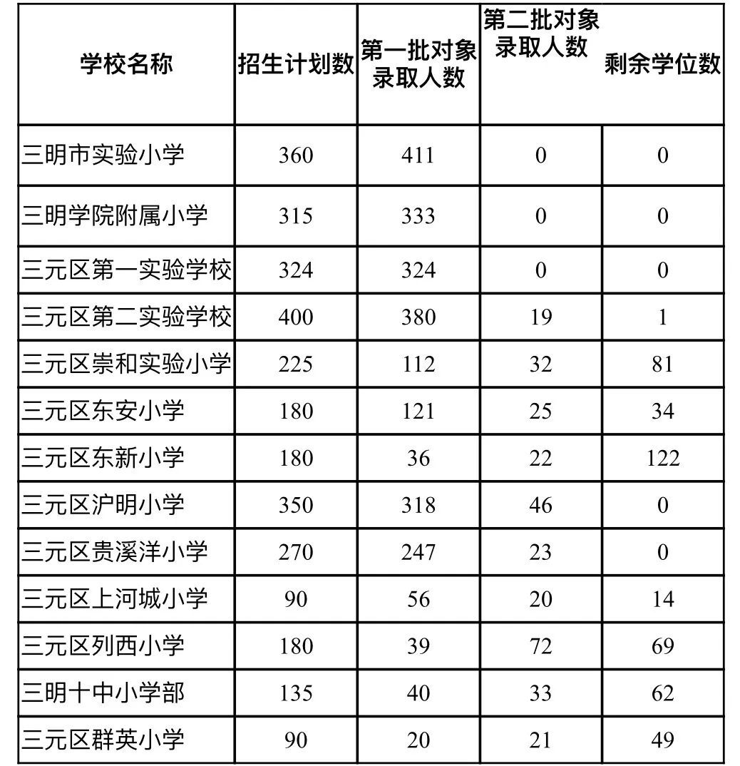 三元區(qū)北部2025年秋季小學(xué)招生第三次剩余學(xué)位公示及志愿填報(bào)須知一、三元區(qū)北部城區(qū)小學(xué)招生第三次剩余學(xué)位公示