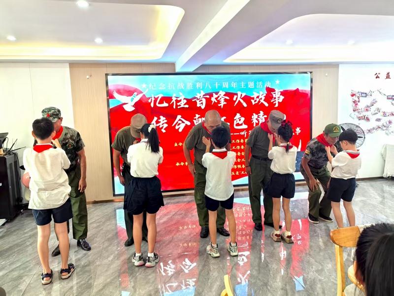 少先隊(duì)員們?cè)谶@難忘的時(shí)刻為老兵們佩戴紅領(lǐng)巾。老少同框的畫面令在場的領(lǐng)導(dǎo)、家長和志愿者們無不動(dòng)容。
