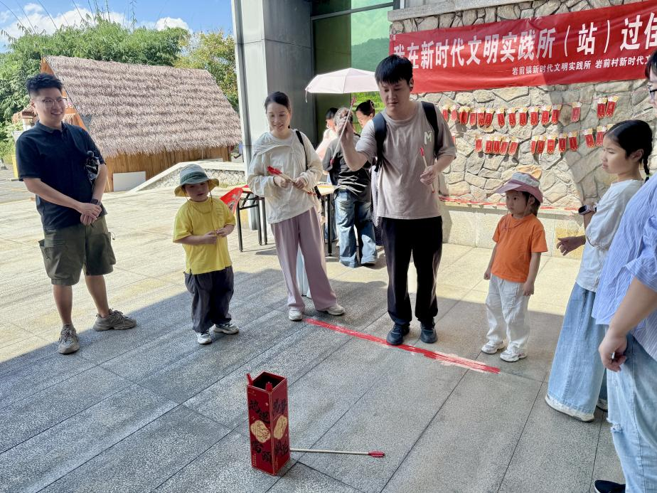 “古”韻悠長:萬壽巖“古牒新章”,解鎖遠古文明 作為三元歷史文化的核心地標,萬壽巖文旅小鎮以“古牒新章”集章打卡結合“情滿雙節,樂在萬壽巖”限定活動,吸引200余名游客參與。活動串聯“我和國旗合個影”、“投壺競技憶古韻”、“燈謎巧思慶雙節”和“活字印刷憶非遺”四大主題,為萬壽巖文旅小鎮假日體驗增添歷史厚重感與活力。