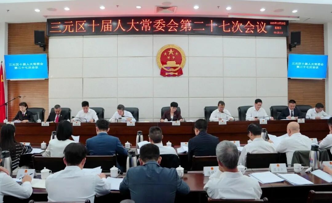 10月29日,三元區(qū)十屆人大常委會召開第二十七次會議。區(qū)人大常委會主任林翠玲,副主任羅裕明、范其鑒、周金濤、蘇奕泰及常委會其他組成人員出席會議。區(qū)政府副區(qū)長陳許忠,區(qū)法院院長黃偉,區(qū)檢察院檢察長劉文婷,區(qū)監(jiān)察委員會負責(zé)同志,區(qū)政府辦、部分鄉(xiāng)鎮(zhèn)人大主席團負責(zé)同志及部分區(qū)人大代表列席會議。羅裕明主持會議。