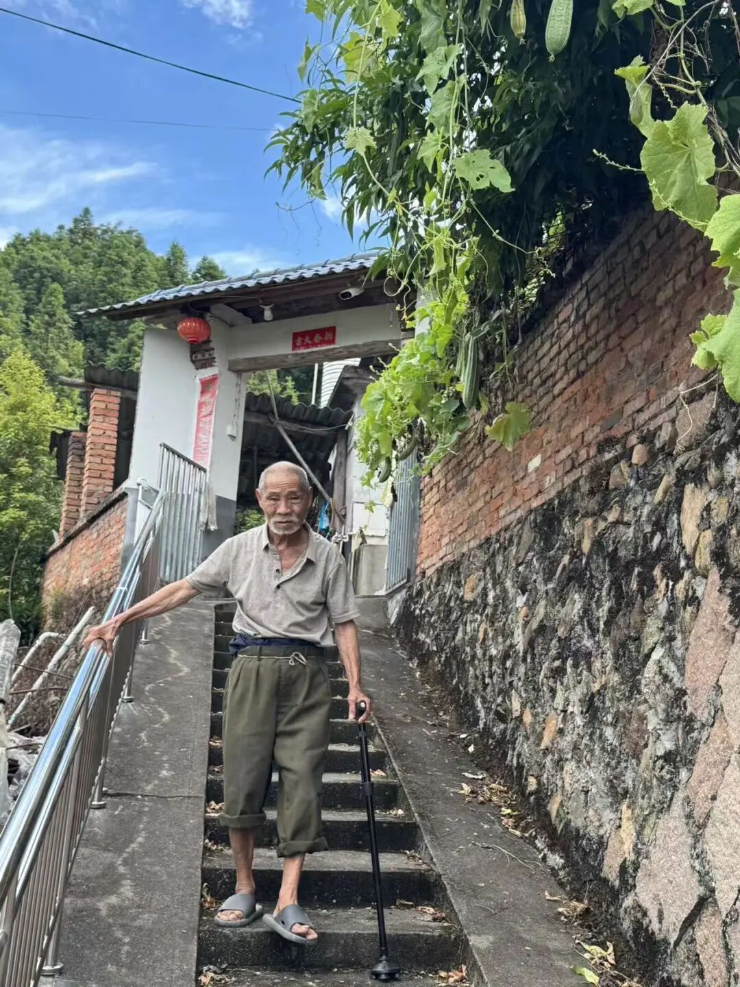 家門口裝上了扶手,李上才大爺可以自己拄著拐杖出門走走了。(陳 渴 攝) 7月初起,陳大鎮著手適老化改造,兩批共18戶改造很快完成……