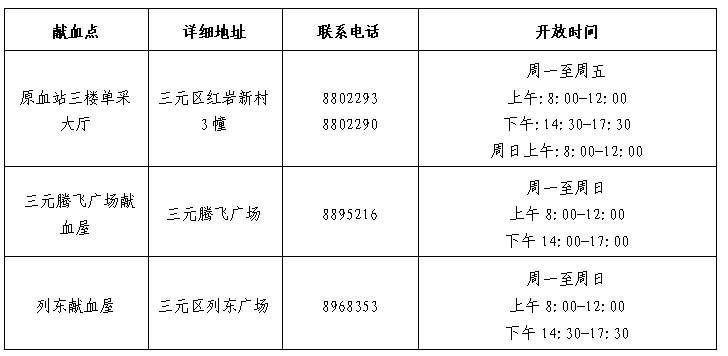 親愛(ài)的市民朋友們: 生命,因血液而奔流不息,目前血液尚無(wú)法人工合成,無(wú)償獻(xiàn)血不僅是保障醫(yī)療臨床用血的需要,更是連接生命與希望的紐帶,體現(xiàn)的是一份沉甸甸的社會(huì)責(zé)任感。 大量科學(xué)研究證實(shí):健康成年人每次捐獻(xiàn)200-400毫升血液(僅占人體總血量的5%-10%),身體能迅速調(diào)節(jié)補(bǔ)充,不僅無(wú)損健康,還能促進(jìn)新陳代謝。 當(dāng)前,我區(qū)臨床用血需求持續(xù)增長(zhǎng),血液儲(chǔ)備面臨壓力,為保障醫(yī)療救治的血液供應(yīng),守護(hù)我們共同的生命線,三元區(qū)衛(wèi)生健康局、區(qū)委文明辦、區(qū)婦聯(lián)、團(tuán)區(qū)委、區(qū)紅十字會(huì)聯(lián)合向全區(qū)適齡及健康公民發(fā)出誠(chéng)摯倡議: 請(qǐng)您在身體條件允許的情況下,勇敢地伸出臂膀,加入無(wú)償獻(xiàn)血的光榮行列! 您的每一次挽袖,都是照亮他人生命的一束光。這份無(wú)私奉獻(xiàn),不僅為需要幫助的人帶去希望,更是城市文明風(fēng)尚的生動(dòng)體現(xiàn),是構(gòu)建溫暖三元、健康三元的堅(jiān)實(shí)力量。 為了讓您的愛(ài)心之旅更加順暢、安心,向您提供以下信息和支持: 一、獻(xiàn)血溫馨提示 獻(xiàn)血請(qǐng)攜帶:本人有效身份證件; 獻(xiàn)血條件:年齡18-55周歲(多次獻(xiàn)血者可延至60周歲);男性體重≥50公斤,女性≥45公斤;女性請(qǐng)避開(kāi)月經(jīng)期及前后三天。 獻(xiàn)血前:避免空腹,飲食宜清淡;保證充足睡眠,不飲酒,一周內(nèi)無(wú)感冒、服藥等情況。 二、獻(xiàn)血點(diǎn)信息 多個(gè)安全、規(guī)范的獻(xiàn)血點(diǎn)均有專(zhuān)業(yè)醫(yī)護(hù)人員為您提供全程服務(wù):