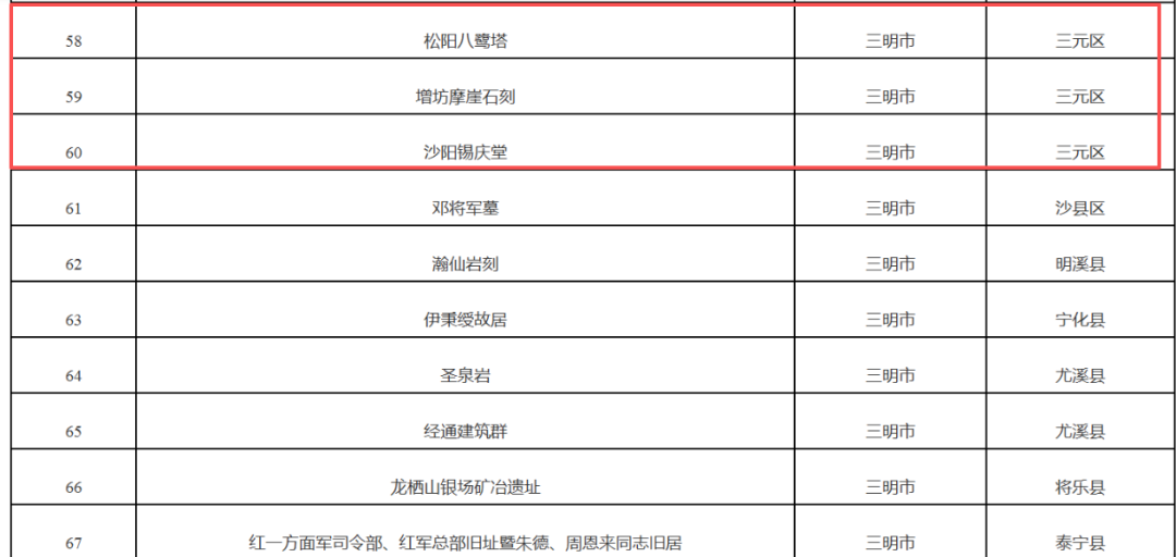 福建省第十一批省級文物保護(hù)單位推薦名單近日進(jìn)入公示階段,全省共134處文物入選。其中,三元區(qū)有3處文保單位入選。 據(jù)了解,此次申報(bào)遴選工作自2025年3月啟動(dòng),經(jīng)市(縣)級政府申報(bào)、組織專家初評、現(xiàn)場復(fù)核及終評等程序,最終形成推薦名單。 福建省第十一批省級文物保護(hù)單位推薦名單